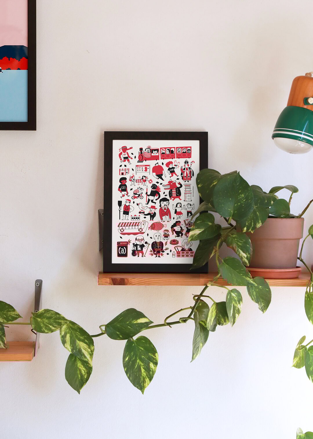 A totes les ciutats hi ha personatges, elements i llocs que s’acaben convertint en icones populars. Aquest cartell és una recopilació d’icones banyolines il·lustrades per Miguel Bustos. Aquesta il·lustració va formar part de la imatge gràfica de la catorzena edició de l’(a)phònica, el Festival de la Veu de Banyoles, l’any 2017.